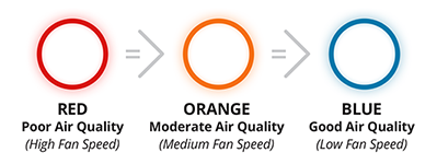 - Air Quality Indicator Light – Shows a color-coded light (blue, orange, red) to let you know the current air quality at a glance.